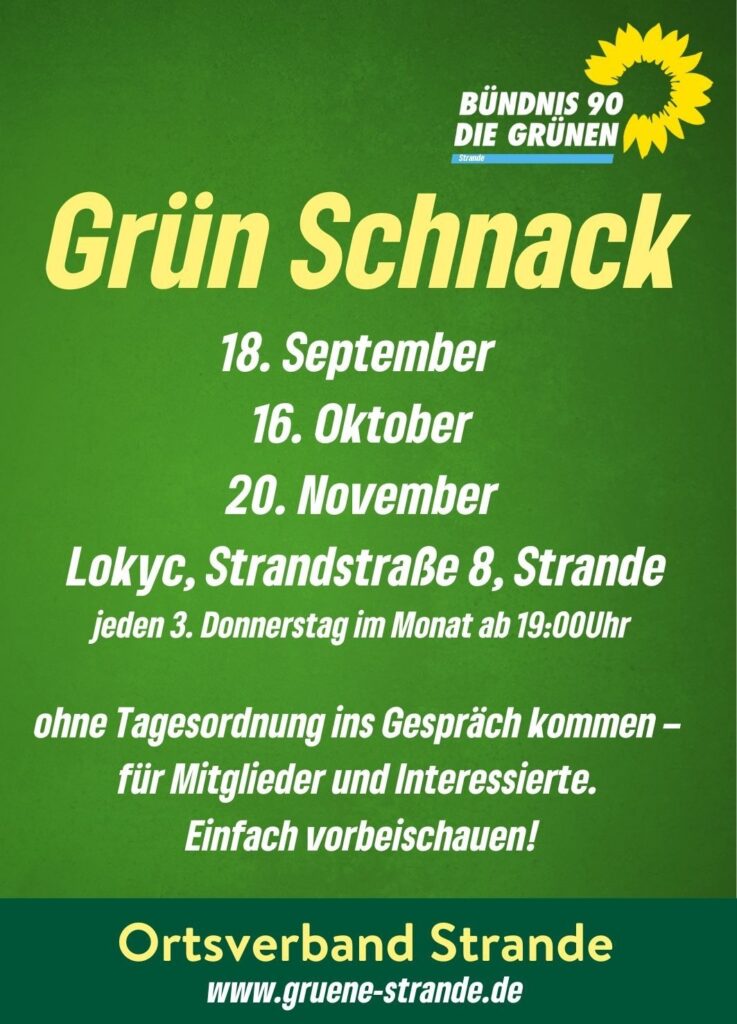 Wir laden Euch zu unserem nächsten GRÜNSCHNACK ein und freuen uns auf rege Beteiligung mit guten Gesprächen und anregenden Diskussionen. Der GRÜNSCHNACK findet jeden 3. Donnerstag im Monat statt.